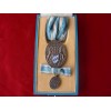 Bavarian cased medal set for 25 year of loyal service. "Ehre Der Arbeit to the front with nice enamel shield. "Die Bayerische Industrie F?r 25 Jahre Treue Dienste" to reverse. This set would be hard to upgrade.