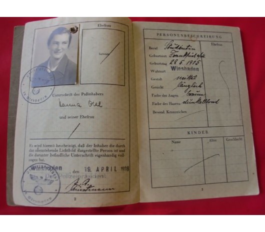 Passport for a female student to travel to Italy in 1938. Photo intact to this nice condition Reisepass.