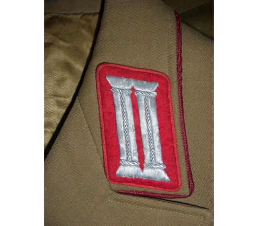 The single breasted tunic is a private maker as well; also from Weimar. Good quality material here! The tunic collar tabs show aging and slight discoloration. The pre-1939 tunic is red piped with correctly piped tabs, also in red. Piping is loose behind the back of the neck, but is not noticeable