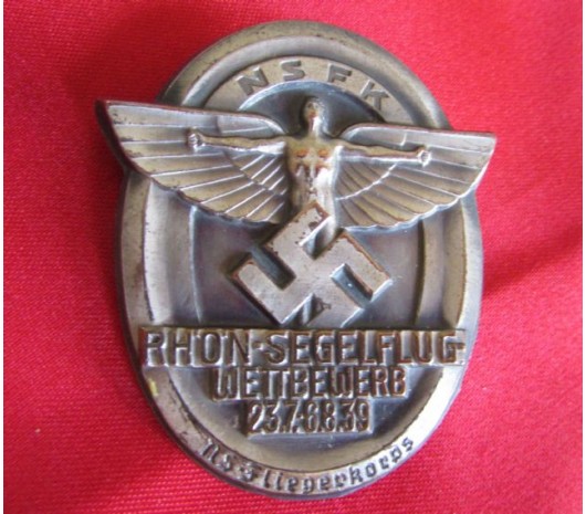"NSFK Rhon-Segelflug Wettbewerb 23.7.-6.8. 39 Wettbewerbsleitung" Tinnie. Maker marked to reverse. Metal, pinback. Excellent condition, rare to find! German Militaria(NSFK Tinnie)