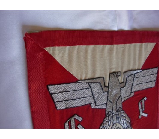 Pre 1939 Vehicle Pennant of a Gauleiter. The eagle embroidery work is splendid with the background field having only a few snags. The corners of the fabric are showing the metal frame underneath, due to wear, which is typical. A great display item!