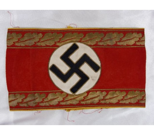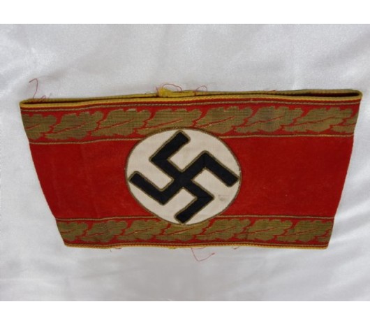 Armband for the Reich Level Leiter eines Oberen or Obersten-Amtes. Gorgeous bullion work to armband. Black ribbon swastika. RZM tag, excellent condition, came off a tunic. This armband is probably rarer to find than any as less than 20 men held this rank!