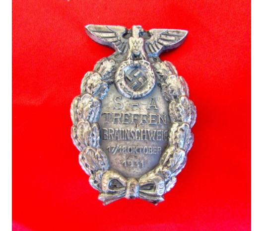 1931 SA-Treffen Braunschweig Badge by "RZM M1/17 GES. GESCH." Nice example.