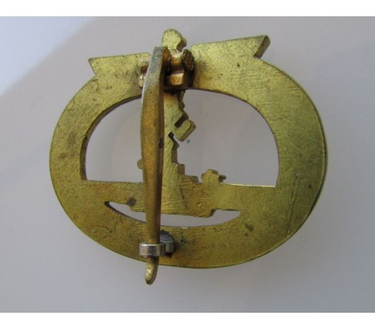 U-Boat War Badge. Die stuck solid zinc construction with gilt finish. Umarked. Very good condition.