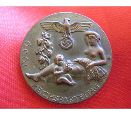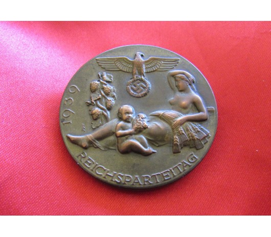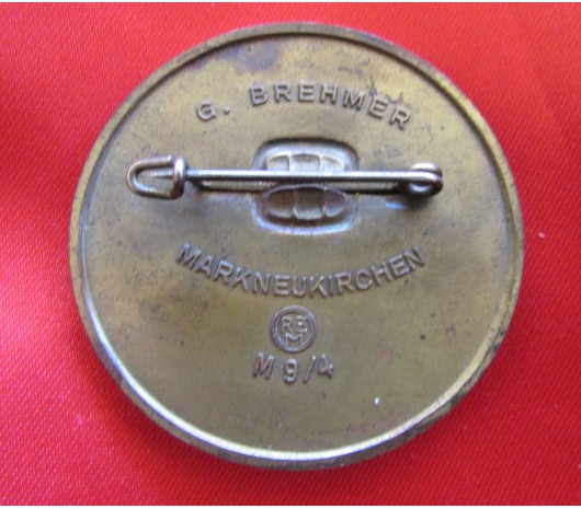 Bronze colored metal pinback 1939 Reichsparteitag Tinnie. Maker marked to reverse.