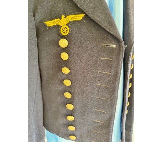 Kriegsmarine Affenjacke, dated 1935 pre war transition jacket from the Weimar Republic to the 3rd Reich Kriegsmarine. The rank of Obergefreiter with the embroidered Adler. Very nice